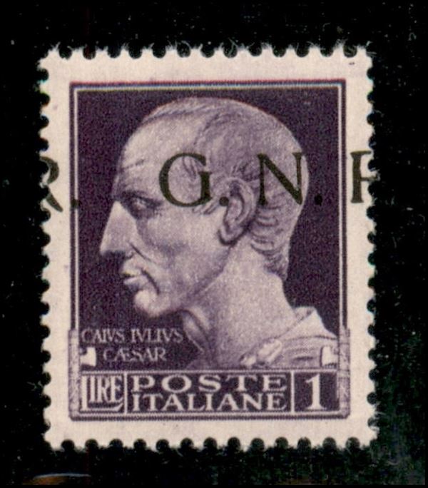 1943 - 1 lira (479/Ihcb) con soprastampa spostata (R a cavallo) - gomma integra