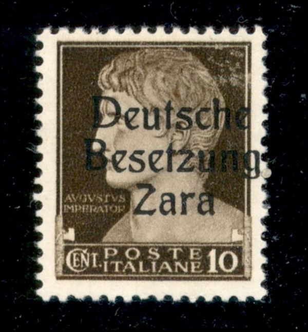 1943 - 10 cent (2/IIf) - soprastampa a destra - gomma integra con residui di colore - lievi abrasioni al recto in angolo alto a destra