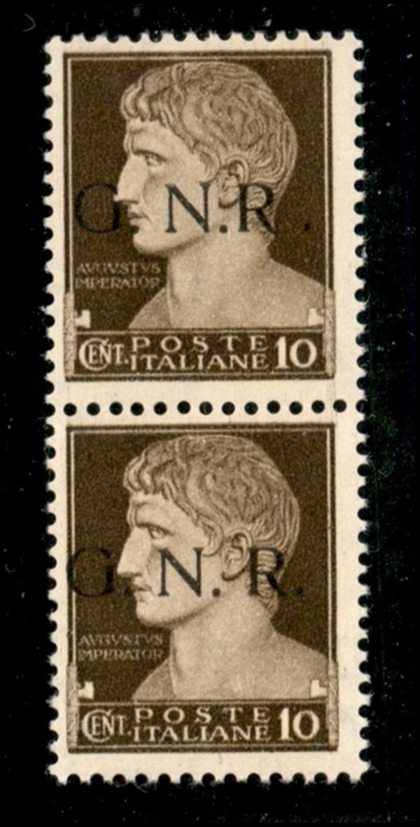1943 - 10 cent (471/I l + 471/I) - coppia verticale (pos. 186/196) - R accostato a N in alto - gomma integra