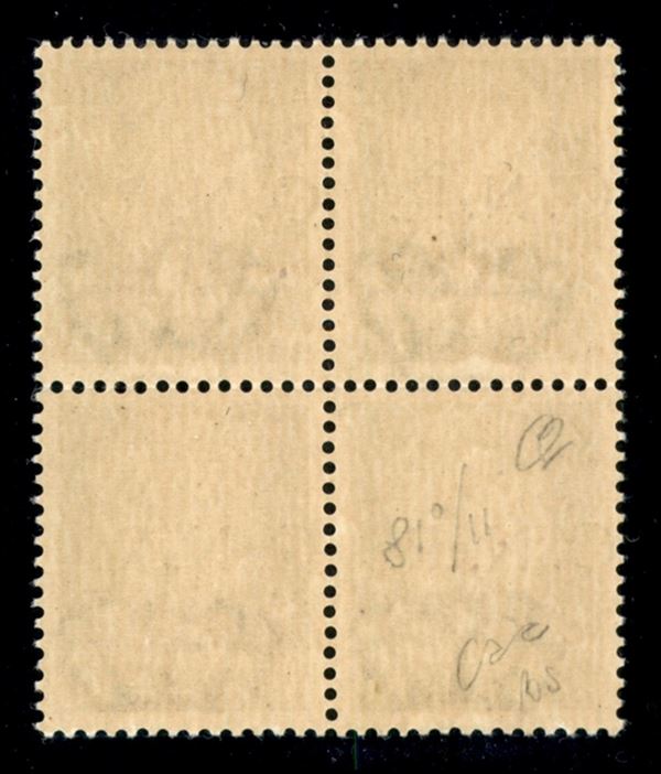 1943 - 10 cent (471/Ifd) - quartina con soprastampa a sinistra - gomma integra (200+)