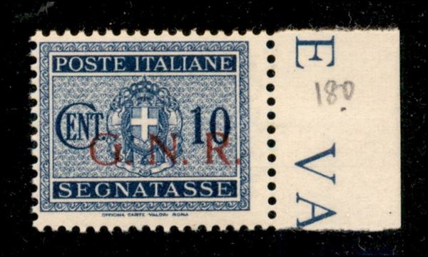 1943 - 10 cent (48/I - varietà) bordo foglio (pos. 180) - soprastampa a destra - gomma integra - non catalogato
