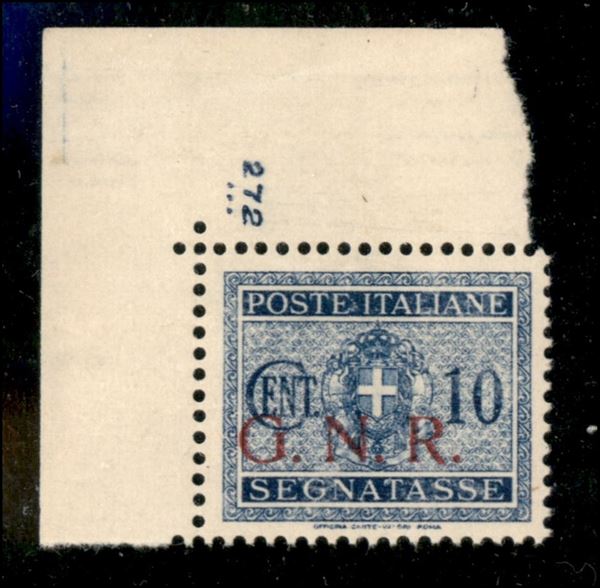 1943 - 10 cent (48/I) angolo di foglio con numero di tavola (272) - gomma integra con aderenze di colore