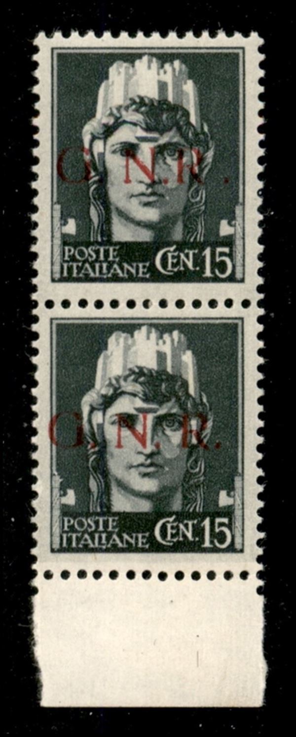 1943 - 15 cent (472/I l + 472/I) - coppia verticale bordo foglio - R accostato a N in alto - gomma integra