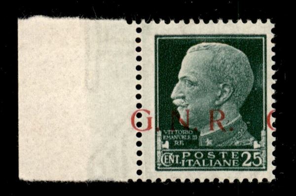 1943 - 25 cent (474/Ifc) bordo foglio con G a cavallo (e a margine) - gomma integra - Raybaudi
