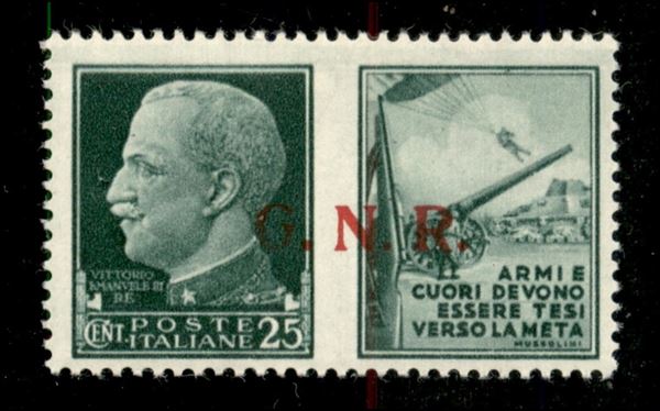 1943 - 25 cent Esercito (14/I varietà eea) con G difettoso + punto piccolo dopo N - gomma integra - non catalogato
