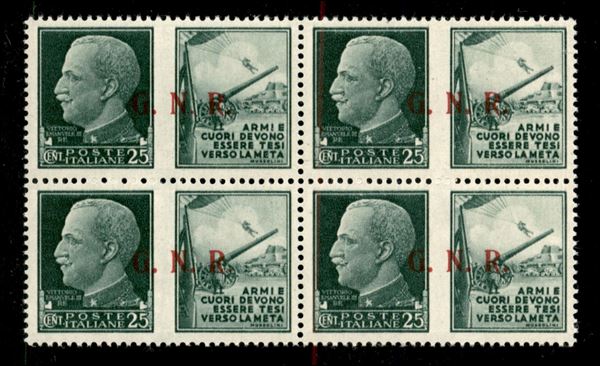 1943 - 25 cent Esercito (14/II) in quartina (pos. 84/90) - coppia di sinistra con punto piccolo dopo N(ee) + punto piccolo dopo R (ef) - gomma integra