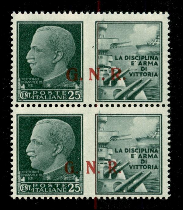 1943 - 25 cent Marina (13/I + 13/II) - coppia con le diverse soprastampe - gomma integra - Raybaudi (250)