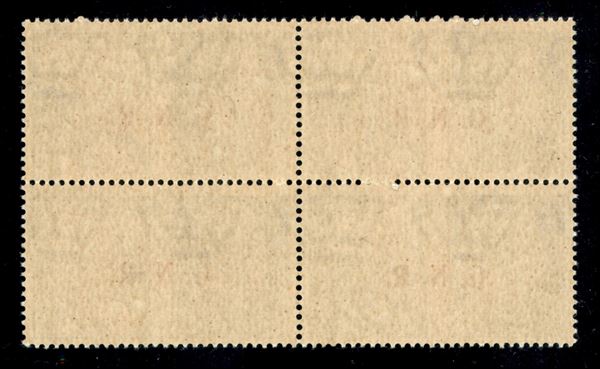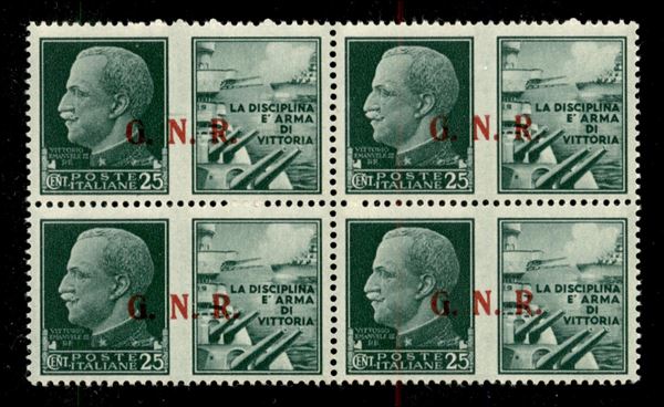 1943 - 25 cent Marina (13/II) in quartina - punto piccolo dopo R (ef) in alto a destra - gomma integra