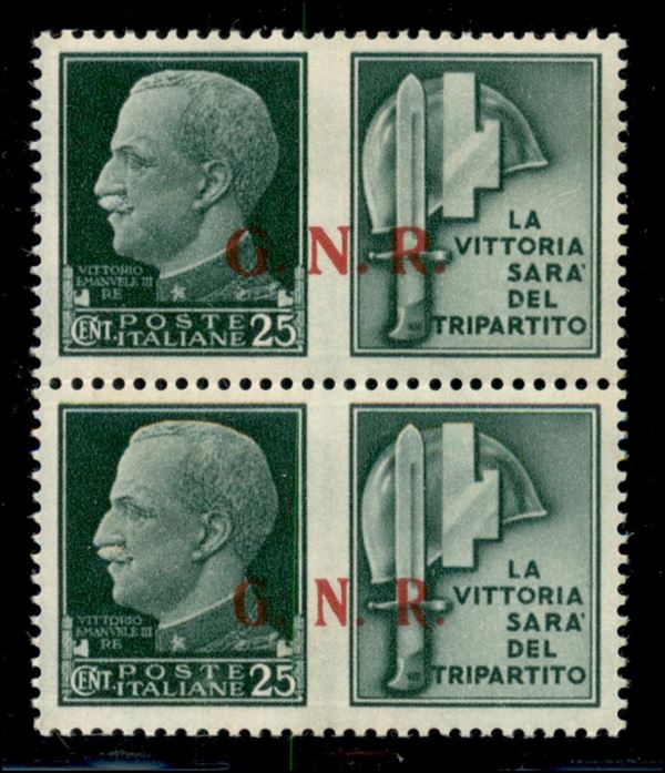 1943 - 25 cent Milizia (16/I + 16/II) - coppia di tre tipi diversi - gomma integra (225)