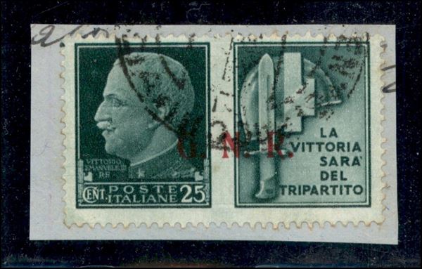 1943 - 25 cent Milizia (16/II) usato su frammento