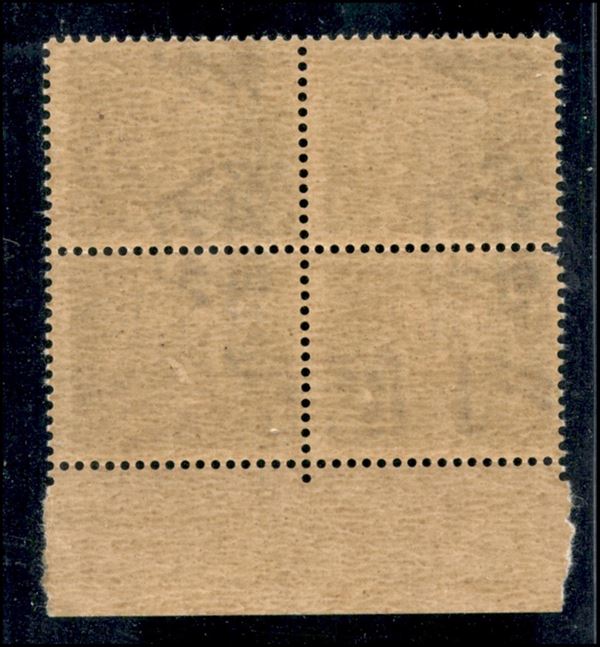 1943 - 5 cent (470/I) - quartina bordo foglio - coppia inferiore con filigrana lettere 12/10 - gomma integra