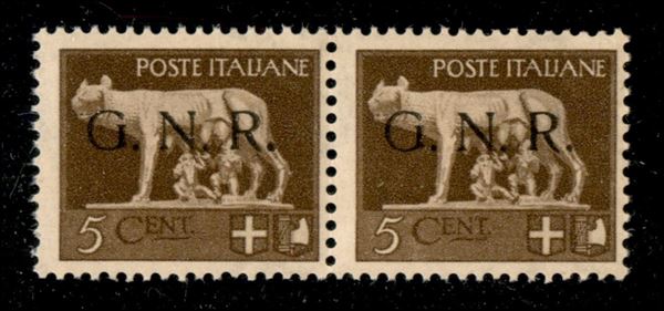 1943 - 5 cent (470/Ipc + 470/I) - punto grosso dopo R in coppia col normale - gomma integra