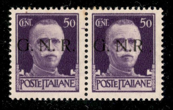 1943 - 50 cent (477/I + 477/I l) - coppia orizzontale - a destra R accostato a N - gomma integra - timbrino Scotto