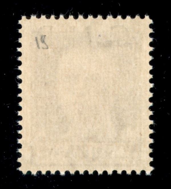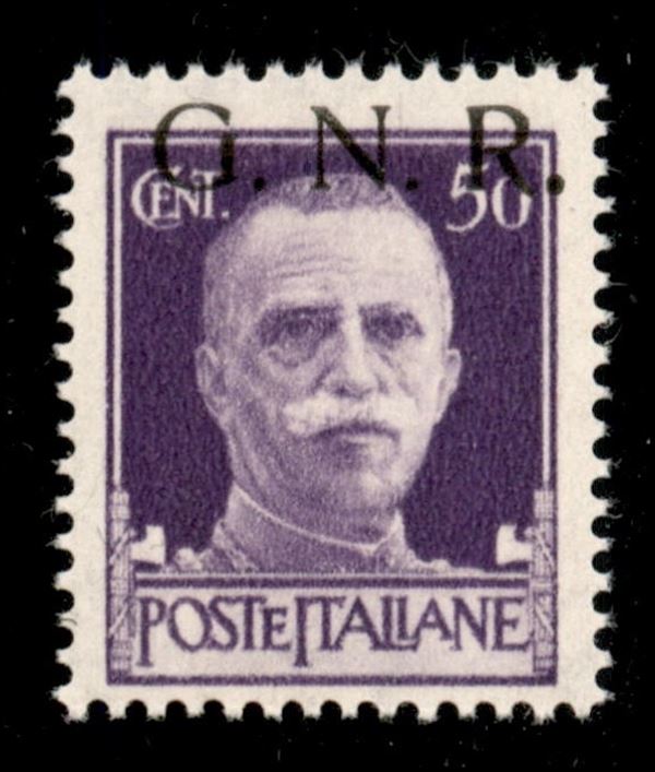 1943 - 50 cent (477/Id varietà pc) con soprastampa in alto + punto grosso dopo R - gomma integra