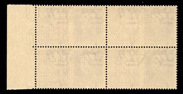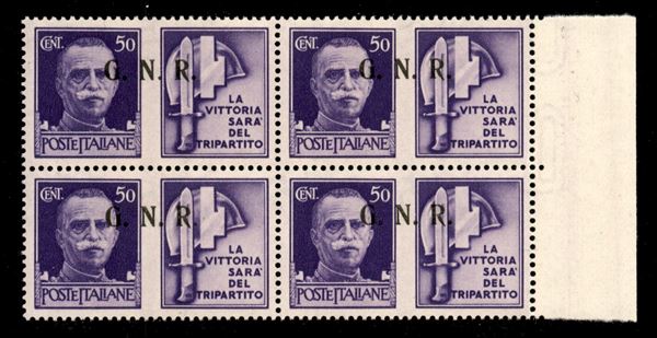 1943 - 50 cent Milizia (24/II) in quartina (pos. 84/90) bordo foglio - punto piccolo dopo N (ee) + punto piccolo dopo R (ef) - gomma integra