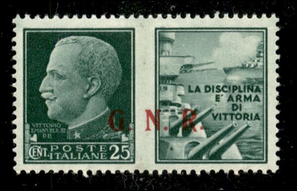 1943 - GNR Brescia - 25 cent (13/IIIed - terzo tipo - Propaganda) - G punto piccolo - nuovo con gomma originale (e intera linguella)