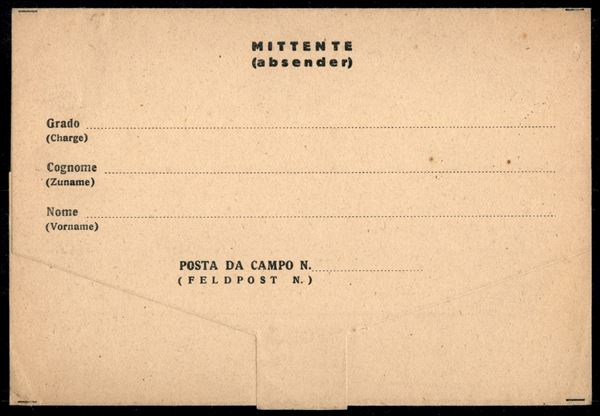 1943 - Posta da Campo - Biglietto postale in franchigia (5B) - nuovo (senza bordi laterali)
