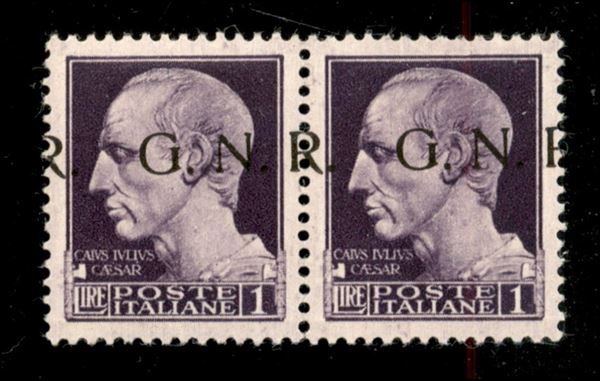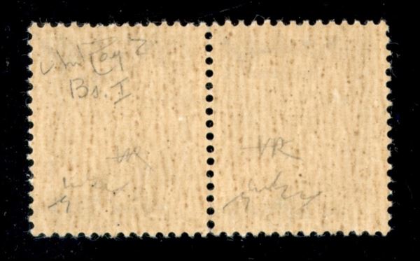 1943 - Seconda Tiratura - 1 lira (479/Ihcb - CEI 10/I varietà) - coppia con R a cavallo - gomma integra - Raybaudi + Chiavarello