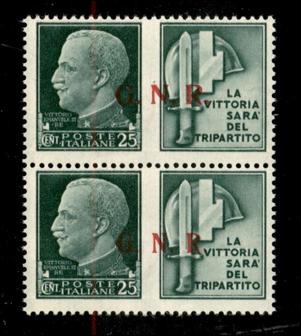 1943 - Secondo + Terzo tipo - 25 cent Milizia (16/I + 16/II) in coppia - gomma integra - Raybaudi (225)