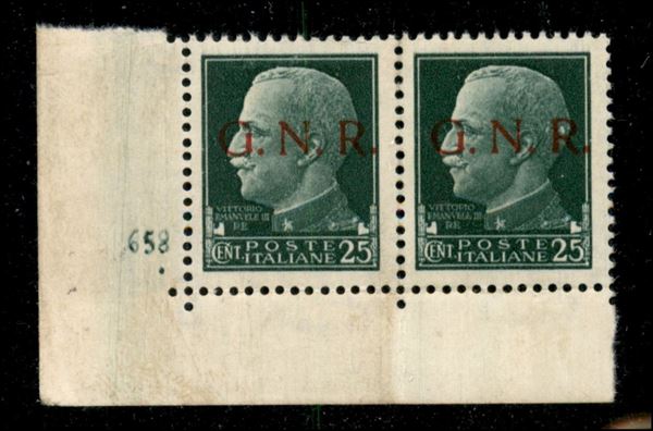 1944 - 25 cent (474) - coppia angolo di foglio con Numero di Tavola (658) - gomma integra