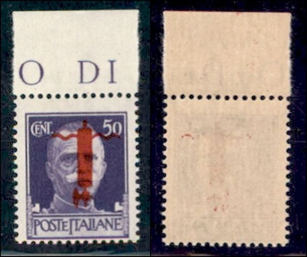 1944 - Fascio - 50 cent (493BAa) - soprastampa capovolta - gomma integra