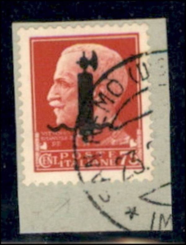 1944 - Soprastampa L in nero - 75 cent (494C) usato su frammento