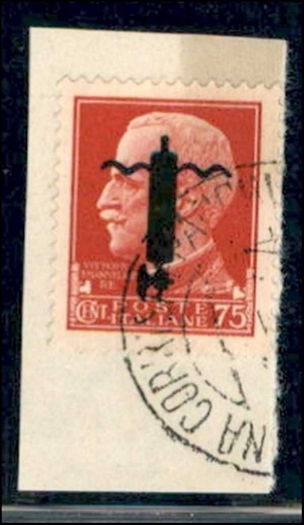 1944 - Soprastampa L in nero - 75 cent (494Ca) con soprastampa capovolta - usato su frammento