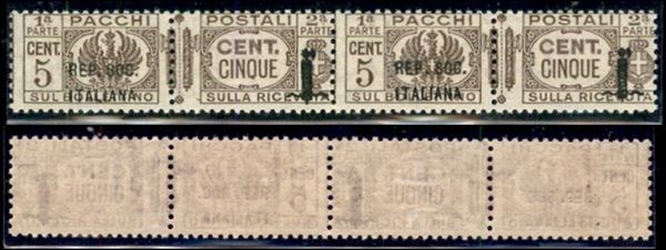 1944 - Soprastampe diverse (lunga + corta) - 5 cent (36 + 36a) in coppia - gomma integra