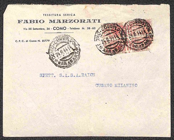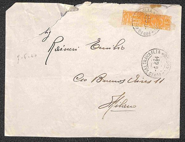 1944 - Tre buste con affrancature di Pacchi Postali di Regno (26 coppia/molto difettoso - 28 - 28) - da esaminare