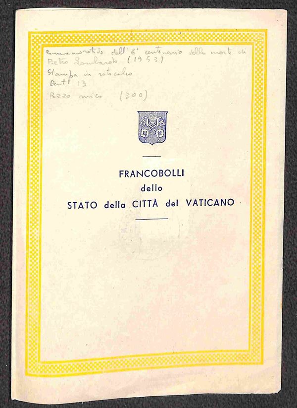 1953 - Pier Lombardo 100 lire (173) su cartoncino delle Poste Vaticane con annullo 5.6.51