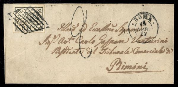 2 baj (3A - bianco) su frontespizio di bustina da Roma a Rimini del 18.4.67