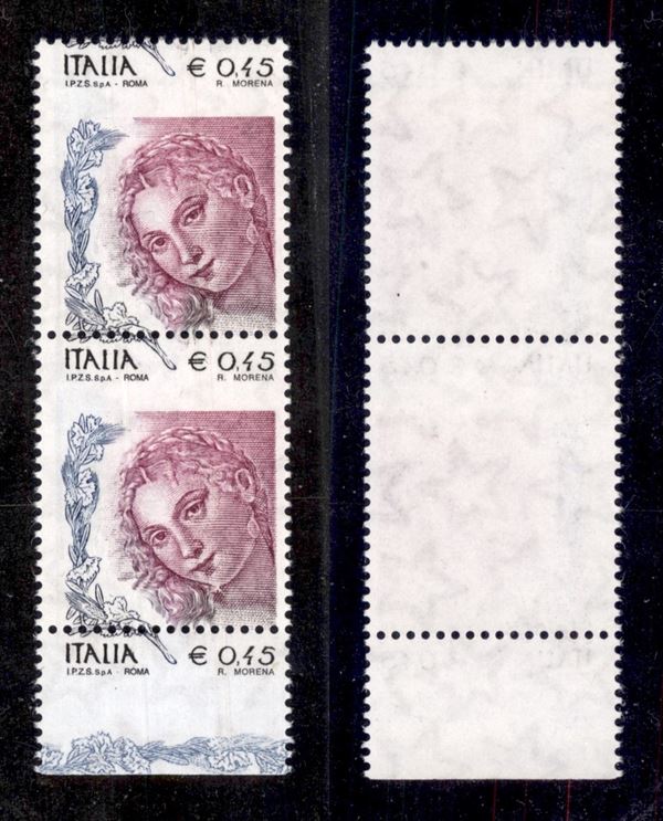 2003/2004 - 0.45 euro (2726 varietà) - coppia verticale bordo foglio con dentellatura orizzontale spostata in alto - valore in alto e sul bordo - gomma integra
