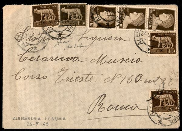 24 settembre 1943 - busta da Alessandria a Roma - due colori del 5 cent - Chiavarello