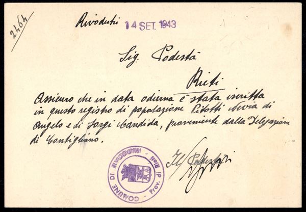 29 settembre 1943 - Cartolina da Rivodutri a Rieti