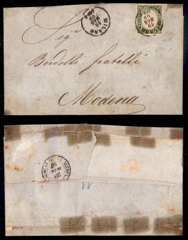 5 cent (13Bc - verde oliva) isolato su circolare da Milano a Modena del 19.5.60 - Oliva (2.000)
