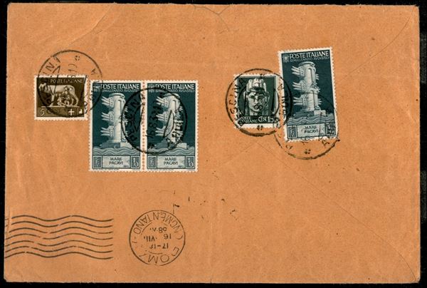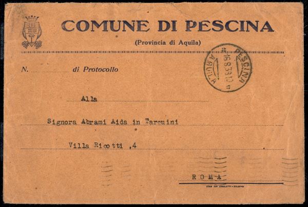 5 cent + 15 cent Imperiale + singolo e coppia 10 cent Augusto (243 + 246 +416) su lettera da Pescina per Roma del 16.8.39