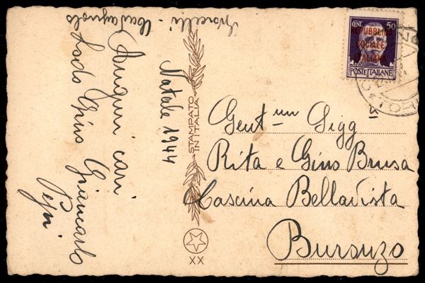 50 cent (493) su cartolina da Cavagnolo/Torino del 22.12.1944