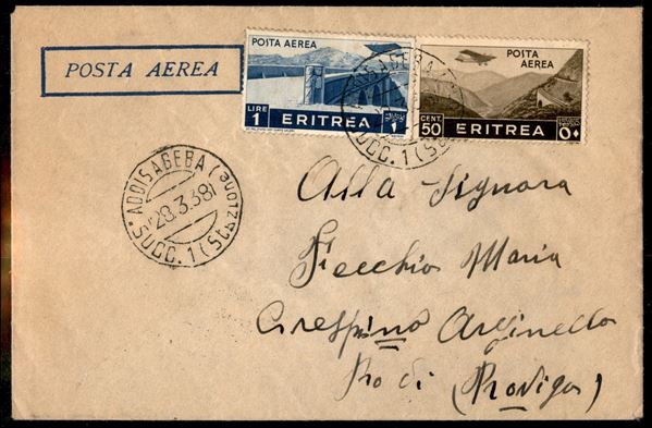 Addis Abeba/Succ. 1 Stazione (P.ti 8) - aerogramma per Rovigo del 28.3.38
