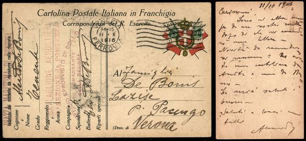 Battaglione Aerostieri - Venezia - Cartolina in franchigia per Verona del 11.10.16