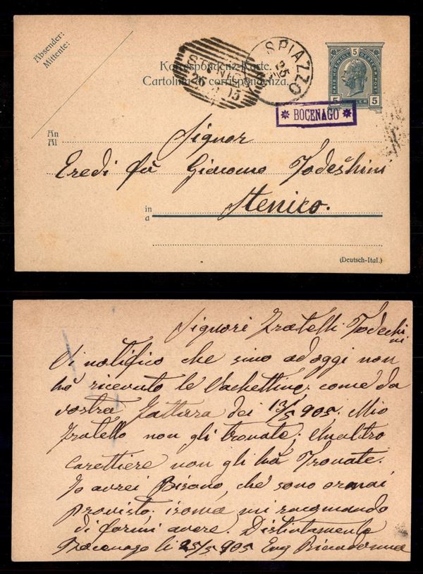 Bocenago (P.ti 8) - cartolina postale per Sternico del 25.5.05