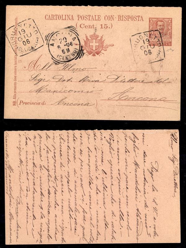 Brugnetto (Senigallia) - cartolina postale da 7 1/2 cent per Ancona del 19.6.06 - Chiavarello