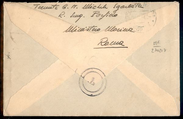 Busta del 20.8.42 recante 50 cent Imperiale annullato R. Sommergibile/Porfido - viaggiata