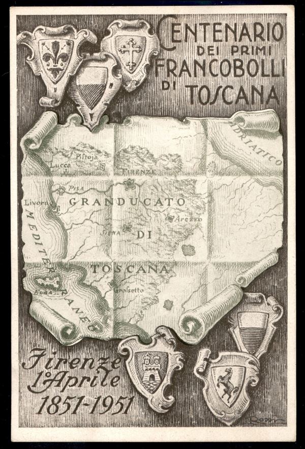 Centenario di Toscana (653/654) - serie completa su cartolina raccomandata del 1.4.51