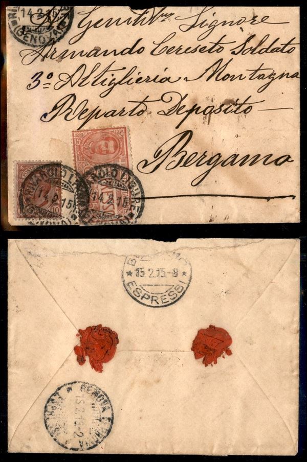 Espresso a tariffa ridotta per militare - 10 cent Leoni (82) + 25 cent Espresso (1) - busta da Rivarolo a Bergamo del 14.2.15