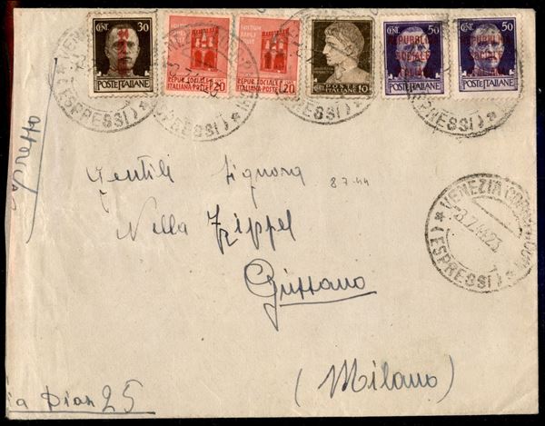 Espresso da Venezia a Giussano del 8.7.1944 con affrancatura multipla di recupero (245 + 492 + 493 due + 496 due) - da esaminare