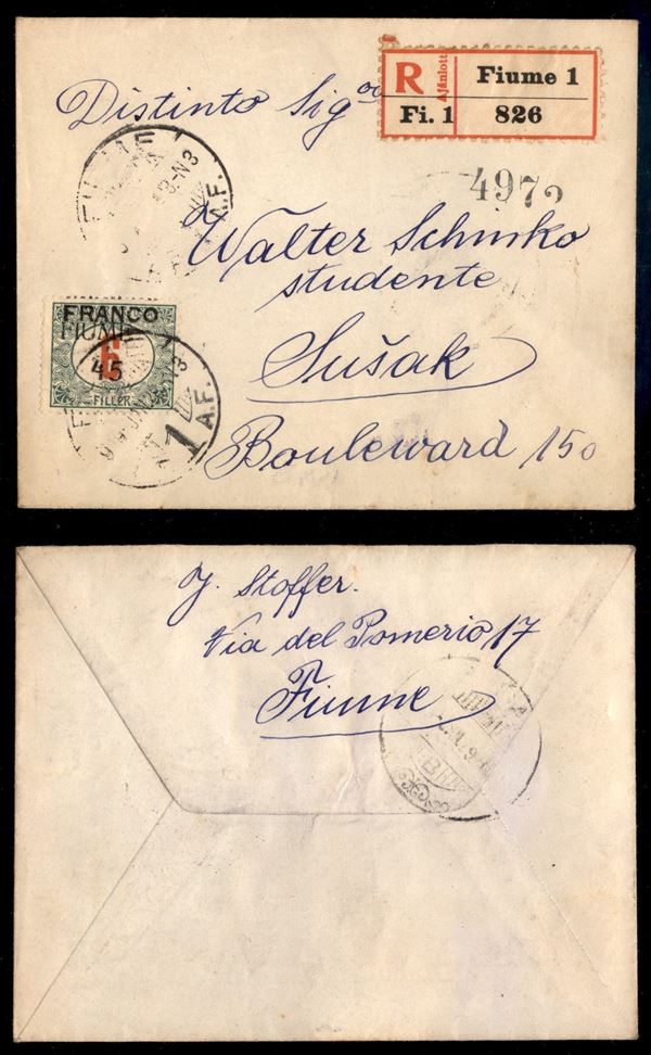 Franco 45 su 6 filler (29cbb varietà) - traccia della barretta solo sulla dentellatura superiore (ultimo della fila verticale) - raccomandata per Susak del 28.1.19
