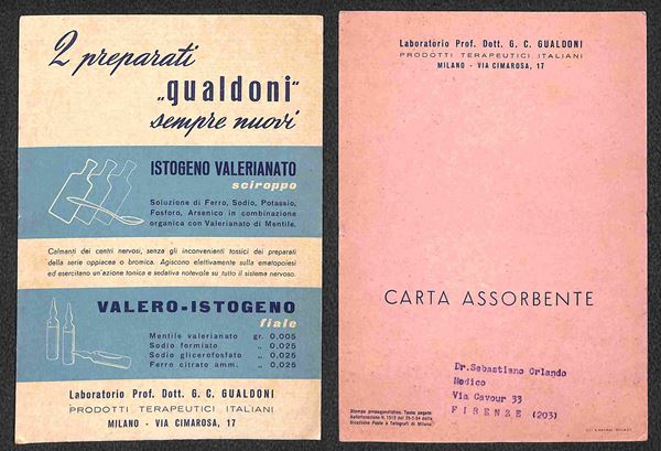Gualdoni - Prodotti Terapeutici - cartoncino pubblicitario (assorbente)