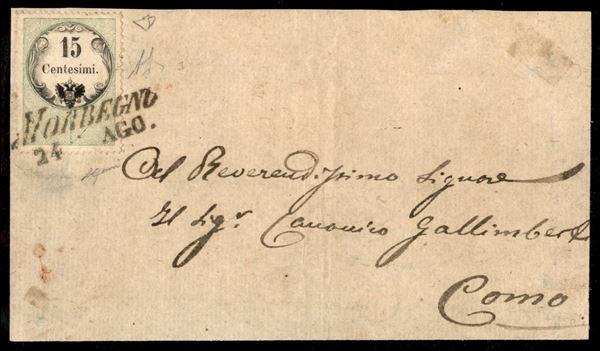 Morbegno (P.ti 5) - 15 cent (3) su intero frontespizio per Como - A. Diena + E. Diena