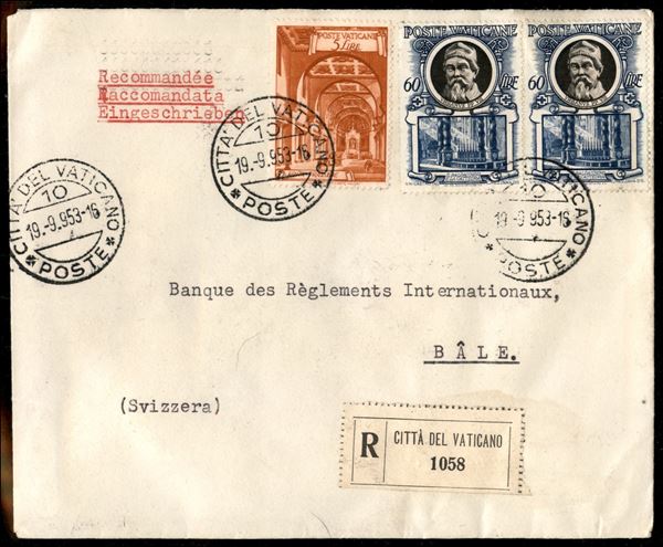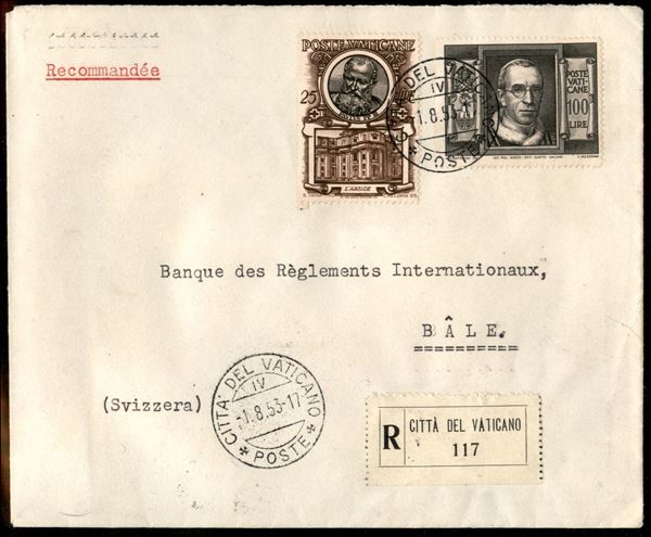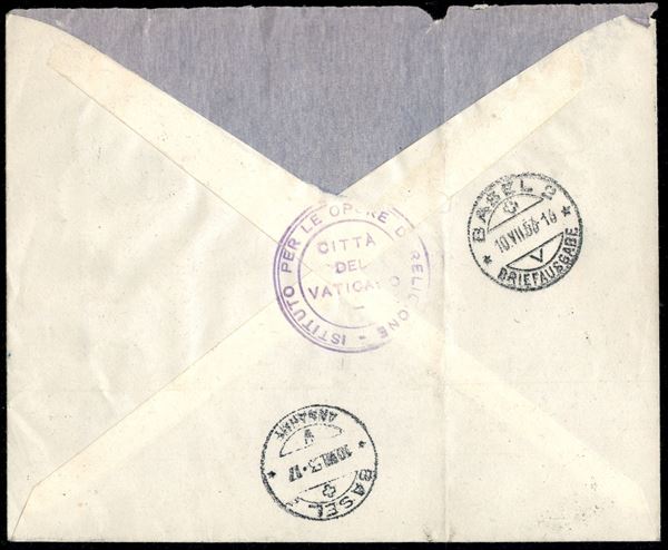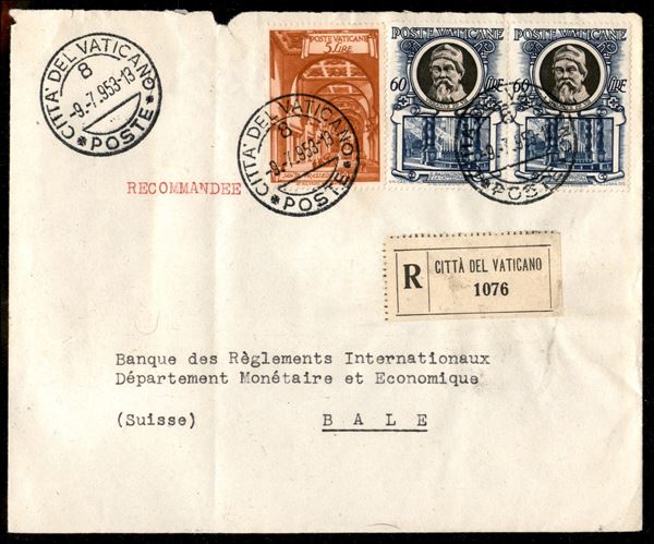 Papi + Basiliche - Insieme di tre raccomandate con affrancature miste delle emissioni da Cittą del Vaticano per Basilea del 1953