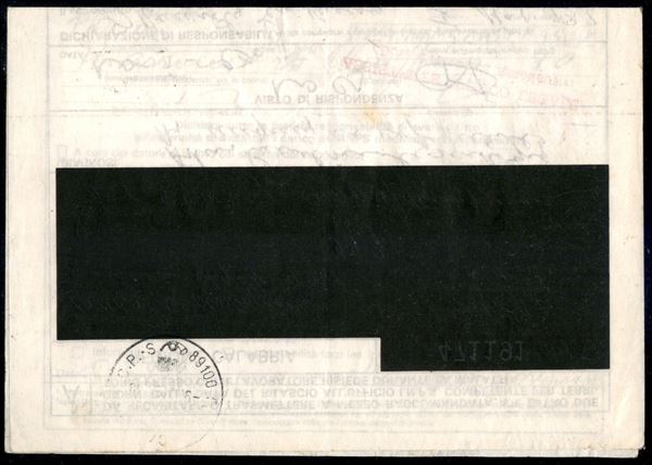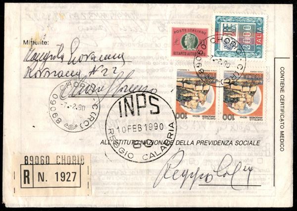 Raccomandata da Chorio a Reggio del 7.2.1990 con 300 lire Recapito usato come ordinario